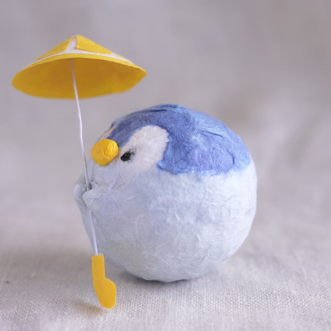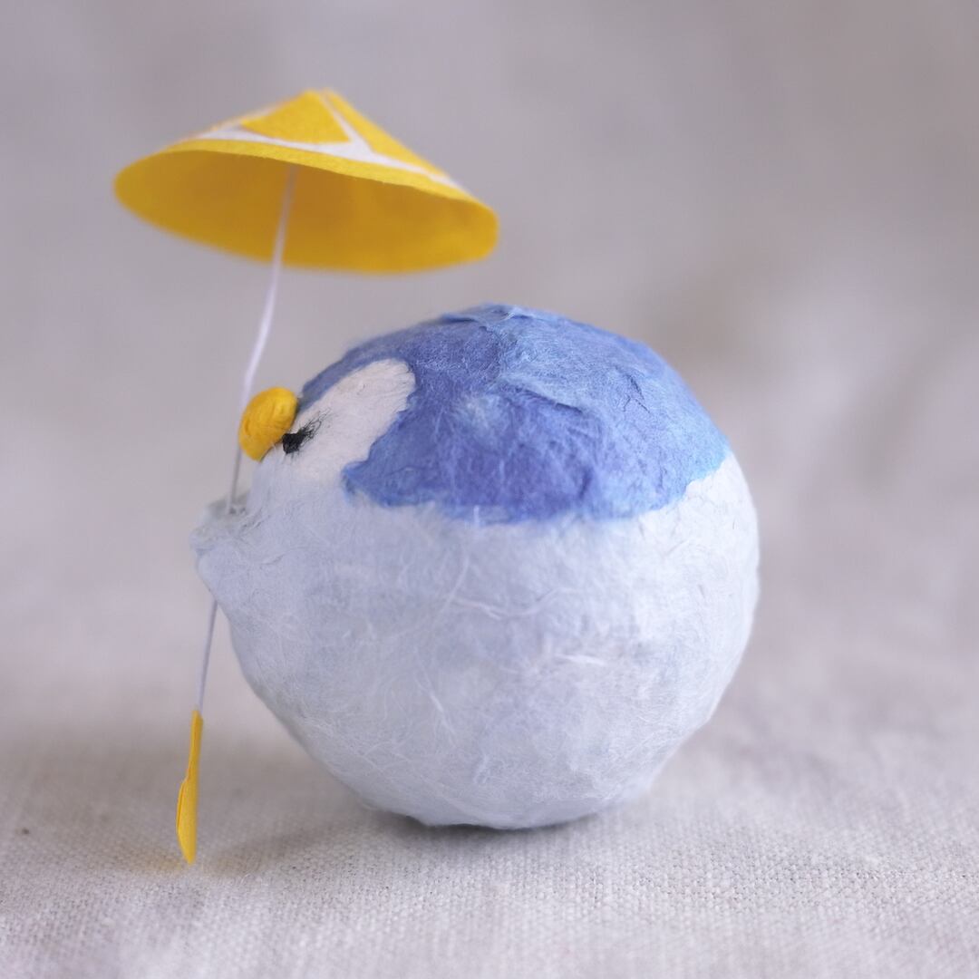 It is Penguin with a Lemon Parasol Roly-Poly Toy Paper mache doll and made of Japanese paper "Washi".