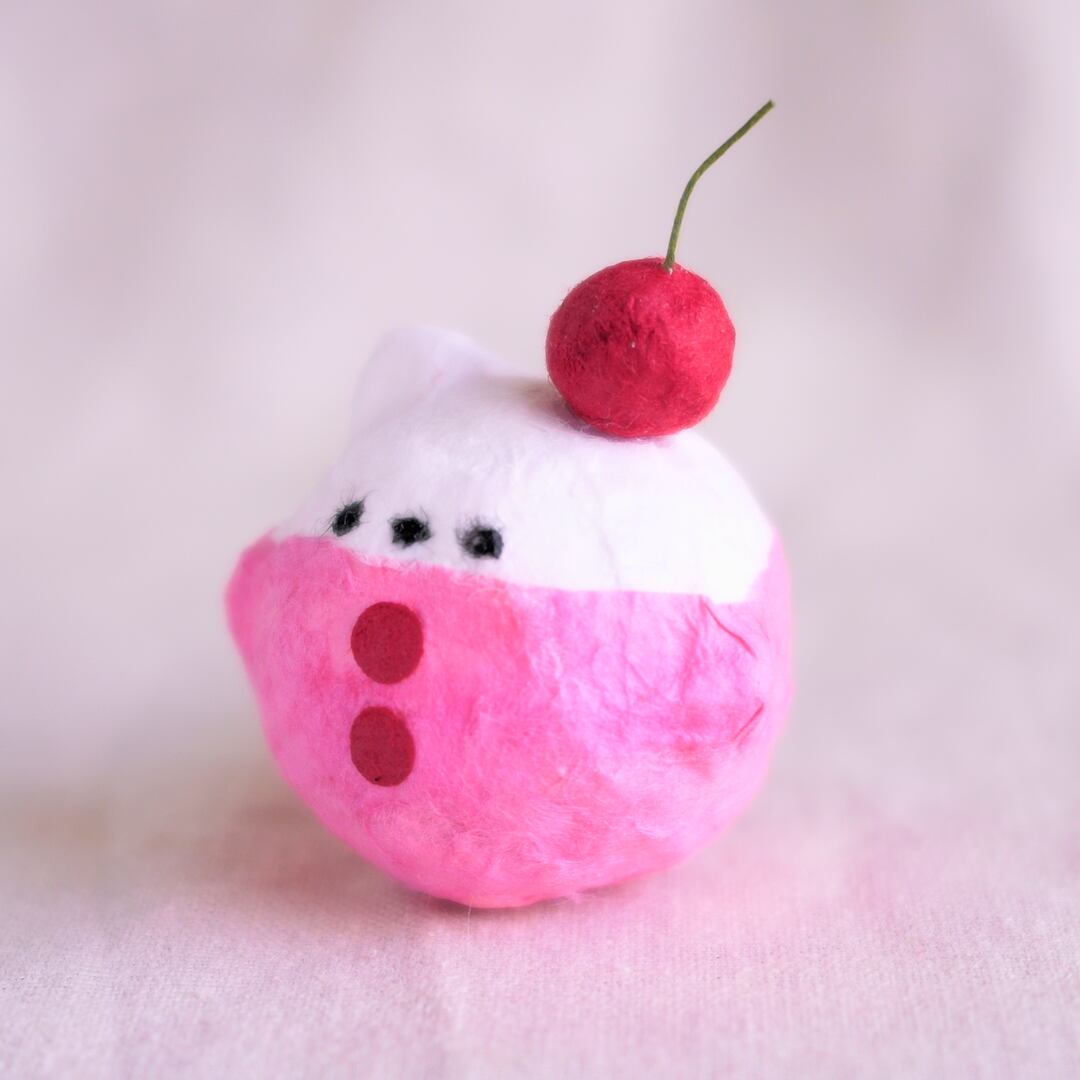 イチゴクリームソーダをイメージしたクマの張り子人形です。