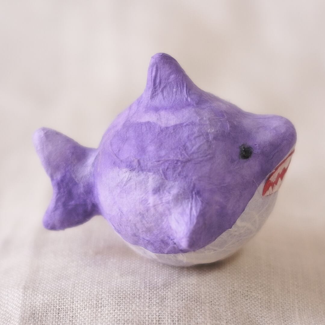 It is Purple Shark Roly-Poly Toy Paper mache doll and made of Japanese paper "Washi".