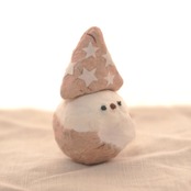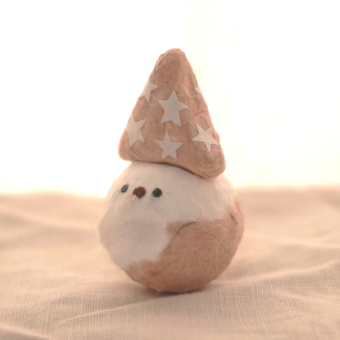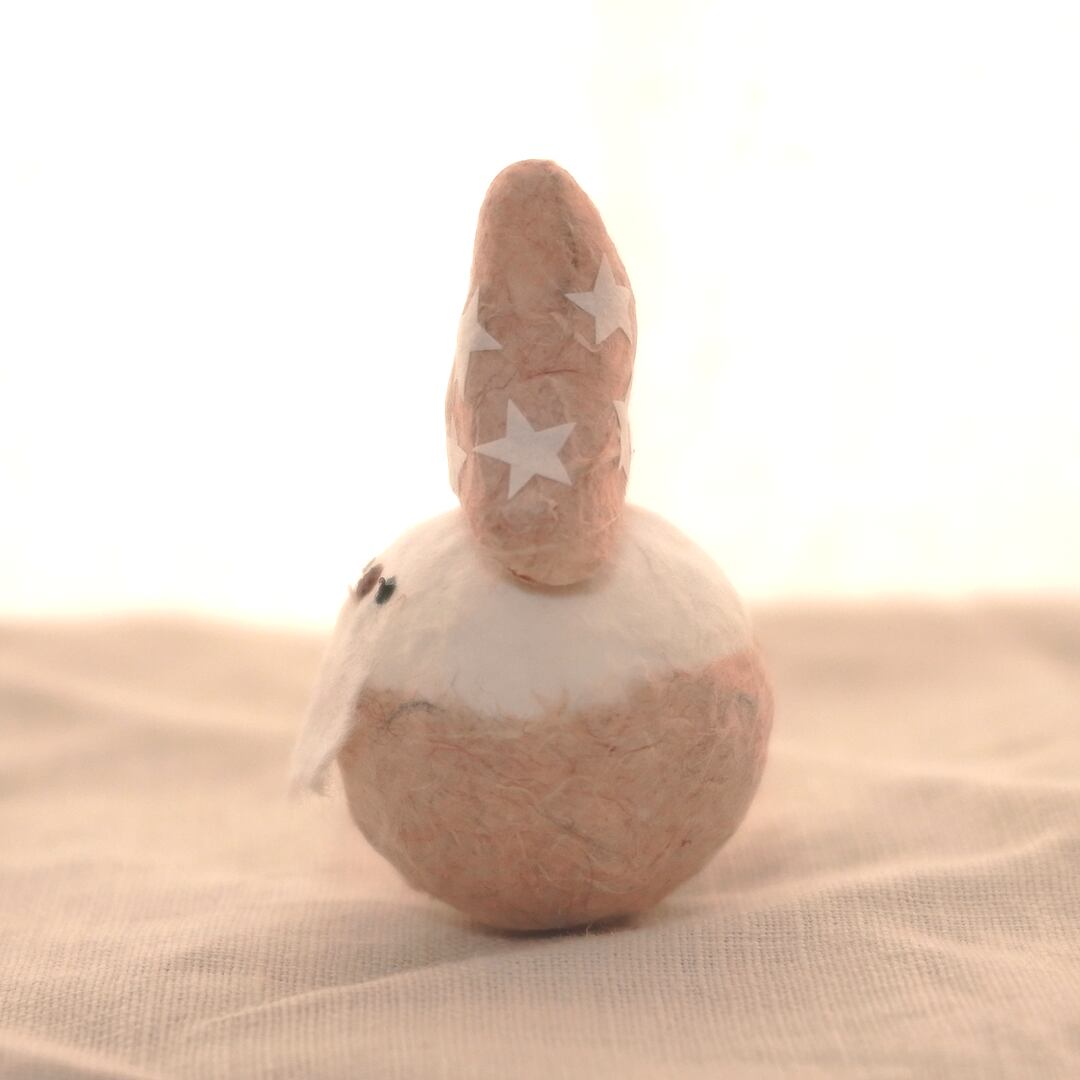 和紙で作ったカフェラテ色サンタの妖精の起き上がりこぼし張り子人形です。