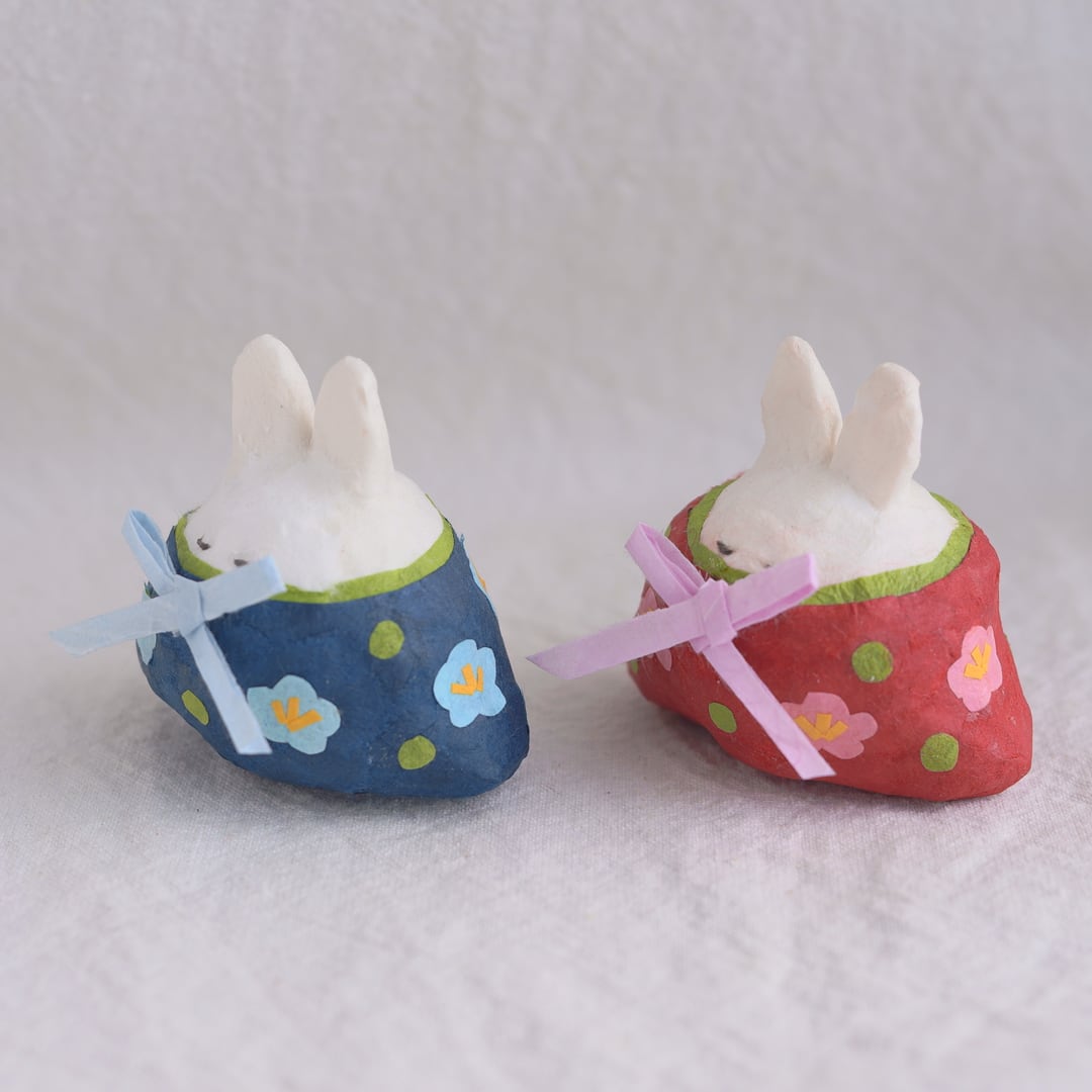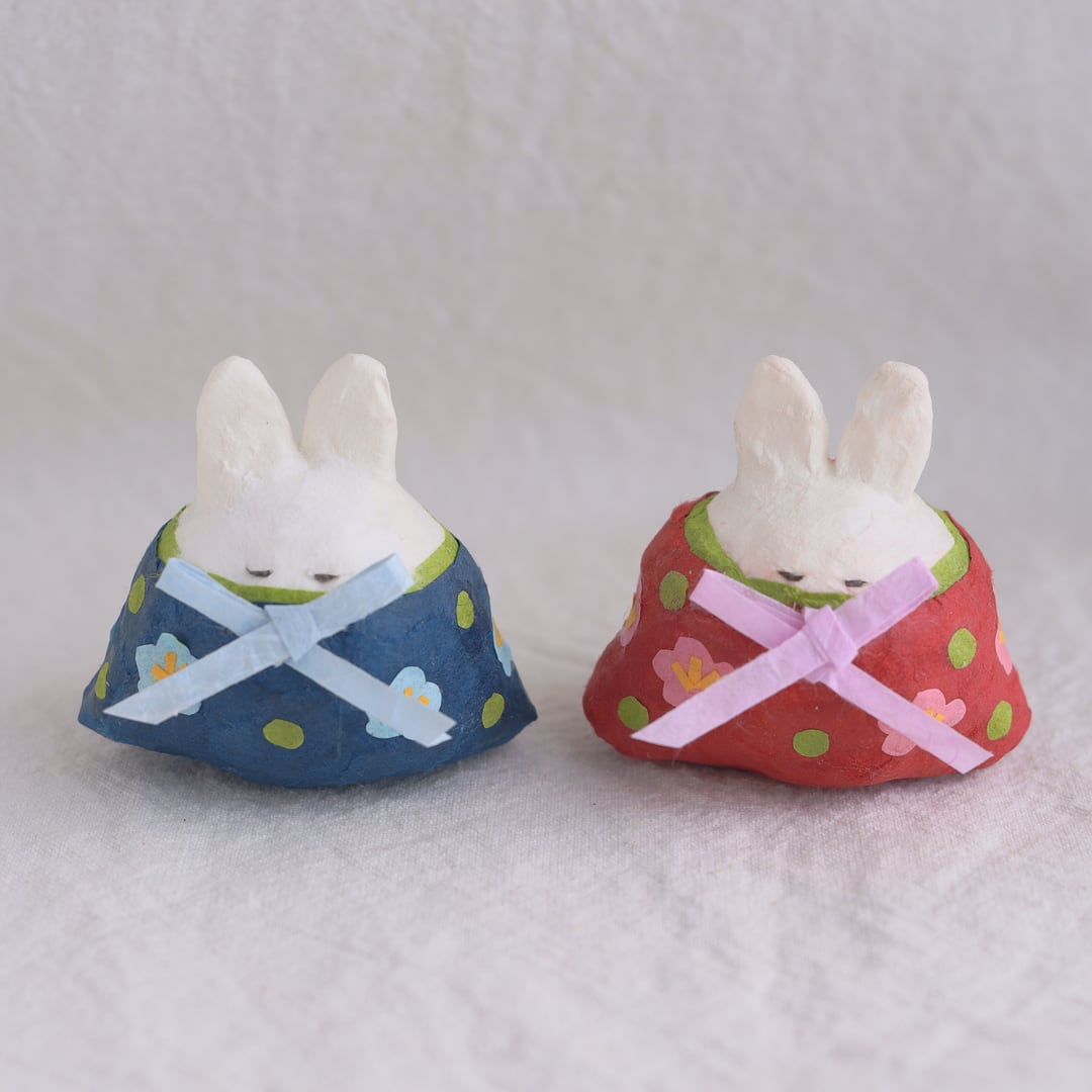 和紙で仕立てた、うさぎのお雛様とお内裏様。